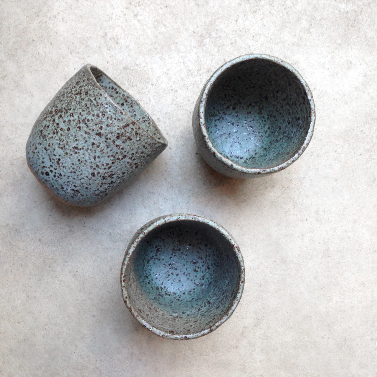 each tumbler is hand-sculpted - pinched & coiled, not wheel-thrown
